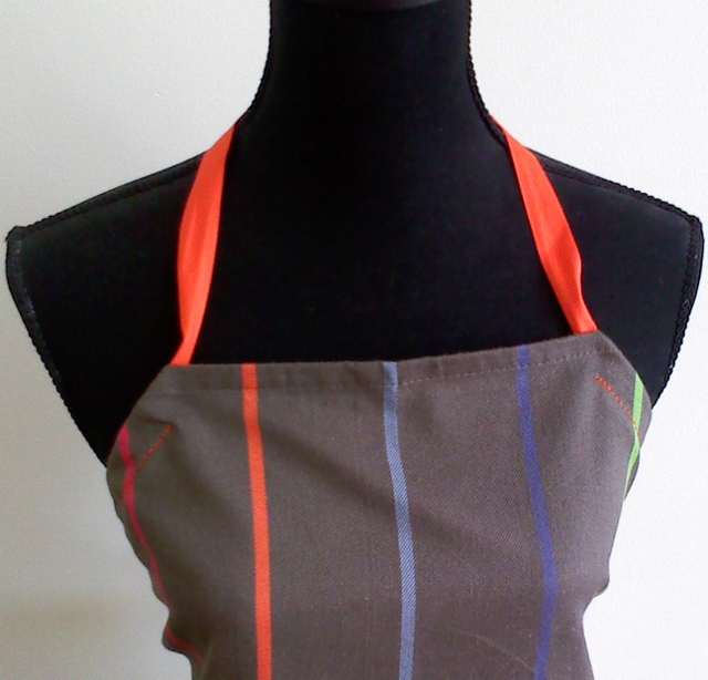 Van een nog eenvoudiger versie maakte ik er ooit acht, voor een verjaardagsfeestje van M dat we vierden in een bakkerij. Toen gebruikte ik één theedoek per schort want liet de zakken achterwege.